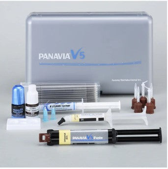 PANAVIA V5 is a dual-cure, fluoride-releasing, color-stable, esthetic, universal resin cement for all indirect restorations. It provides an adhesive milestone by providing self-cure dentin bond strengths equal to a "Gold Standard" light cure bonding agent.